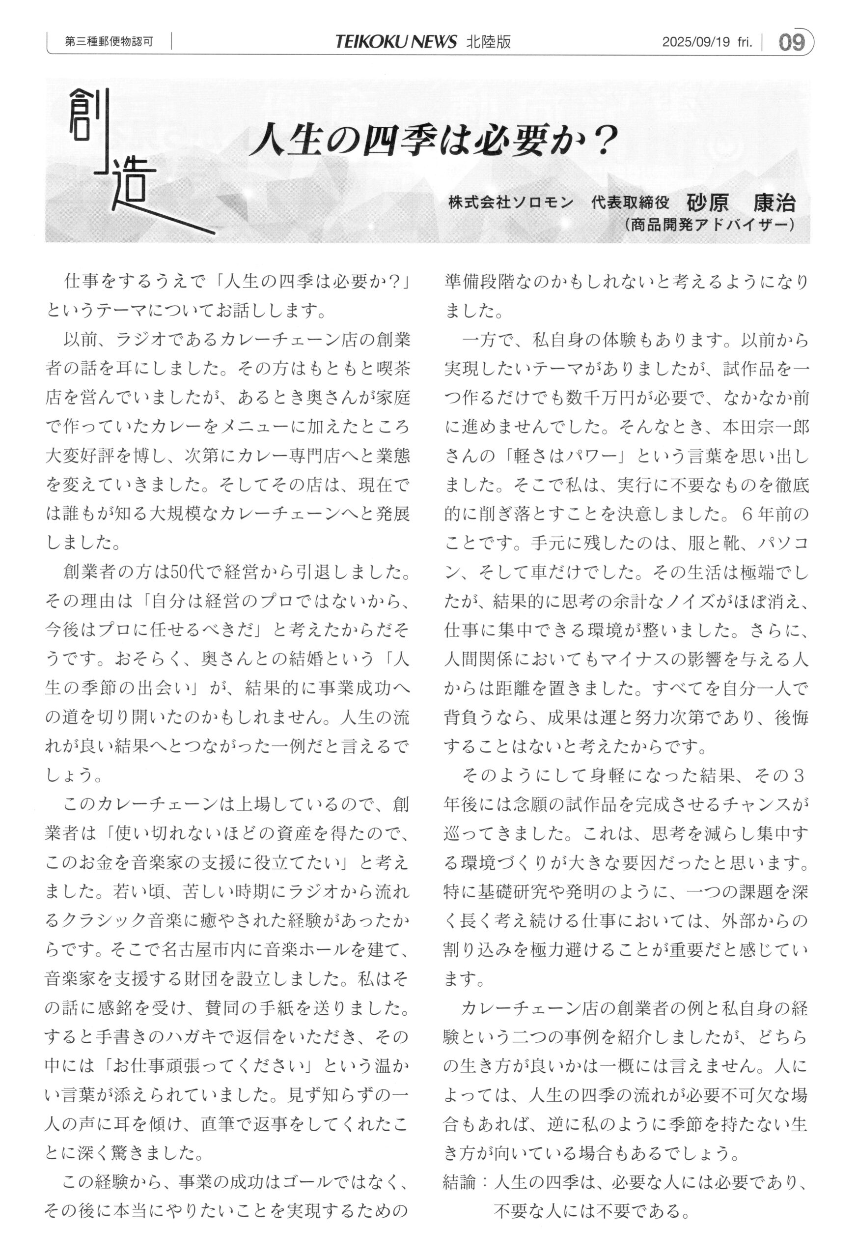 株式会社ソロモン 代表取締役 砂原康治 (商品開発アドバイザー)