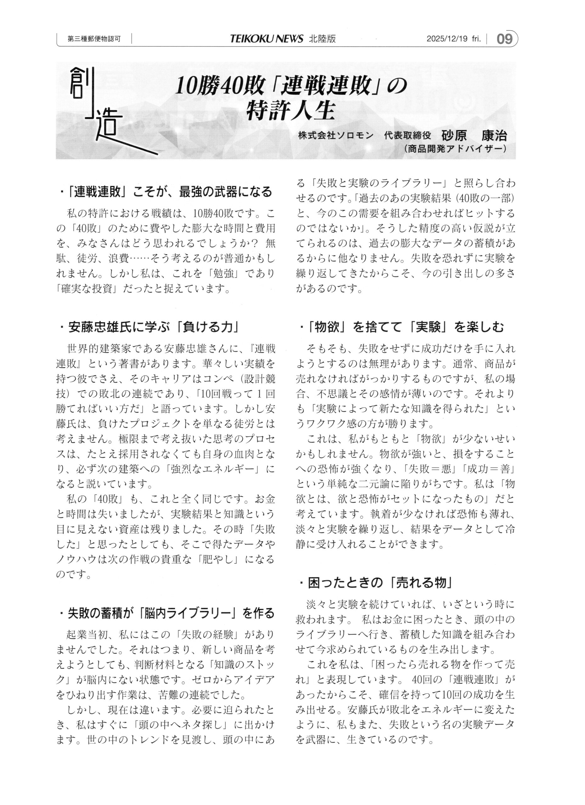 株式会社ソロモン 代表取締役 砂原康治 (商品開発アドバイザー)